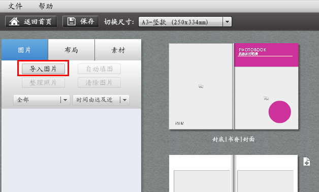 图片导入后再左侧“图片”中选择(如果导入的图片不够,可以继续导入图片,如果有多余图片可以按住Ctrl或Shift键多选,右键删除图片),按自己的想法选择图片,一张张的拖到右侧对应的画册模版中。